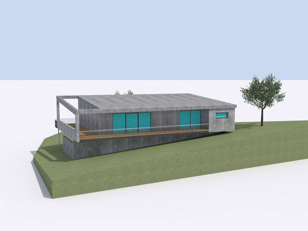 neubau eines modernen zweigeschossigen baukörpers für zwei psersonen in einem älteren baugebiet, ausführung ab erdgeschoss in massivbauweise, viel licht und aussicht, bodentiefe verglasung, behindertengerechte grundrisse, mit umlaufendem balkon, vollunterkellerung, mit Erdwärmepumpe beheizt
